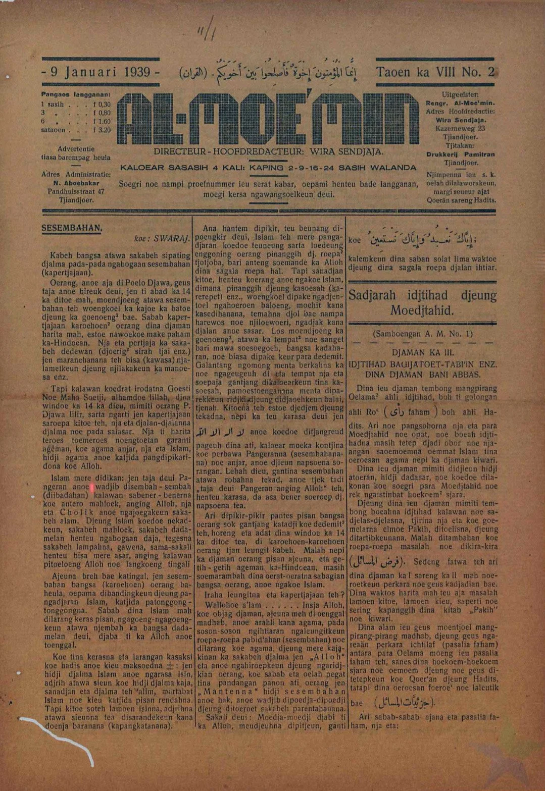 Surat Kabar Catatan Nusantara 7/3/25 Surat Kabar Catatan Nusantara 7/3/25 AL-MOE’MIN 9 Januari 1939 Wira SendjajaAL-MOE’MIN 9 Januari 1939Tjiandjoer: Rengr. Al-Moe’min, 1939 Read More